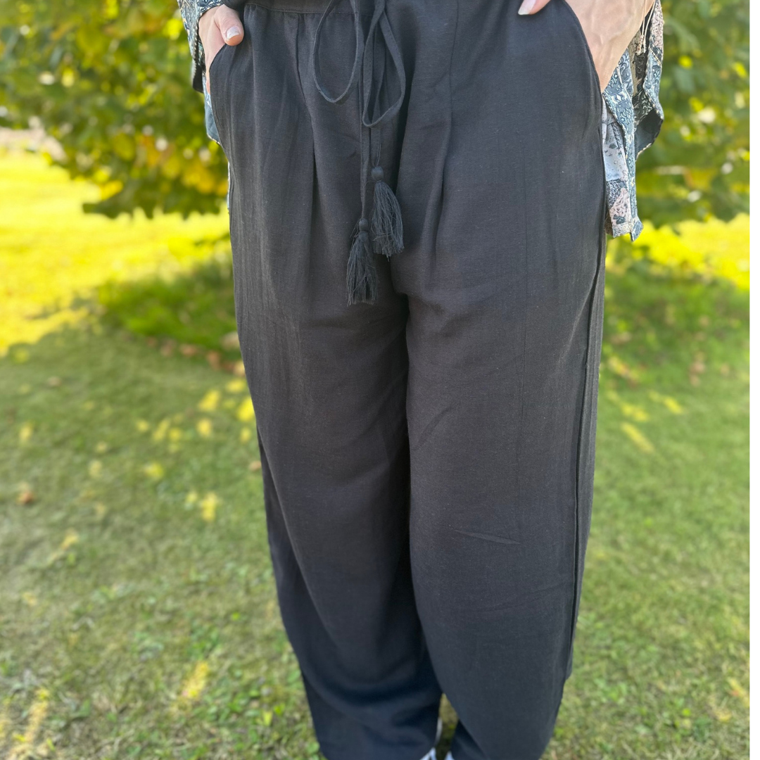 Avslappnade svarta Filo byxor, perfekta för en bekväm och stilren look.