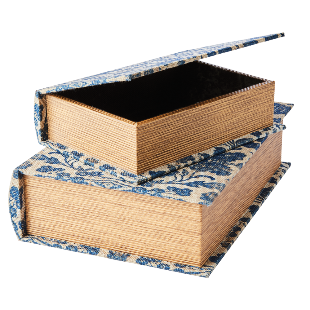 Böckerna fungerar lika bra som praktiska förvaringslådor för småsaker som fjärrkontroller, smycken eller andra personliga föremål. Kombinera gärna med ljusstakar, vaser eller andra prydnadsföremål för att skapa ett personligt och genomtänkt stilleben.