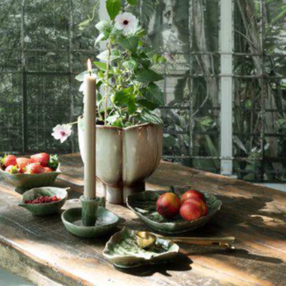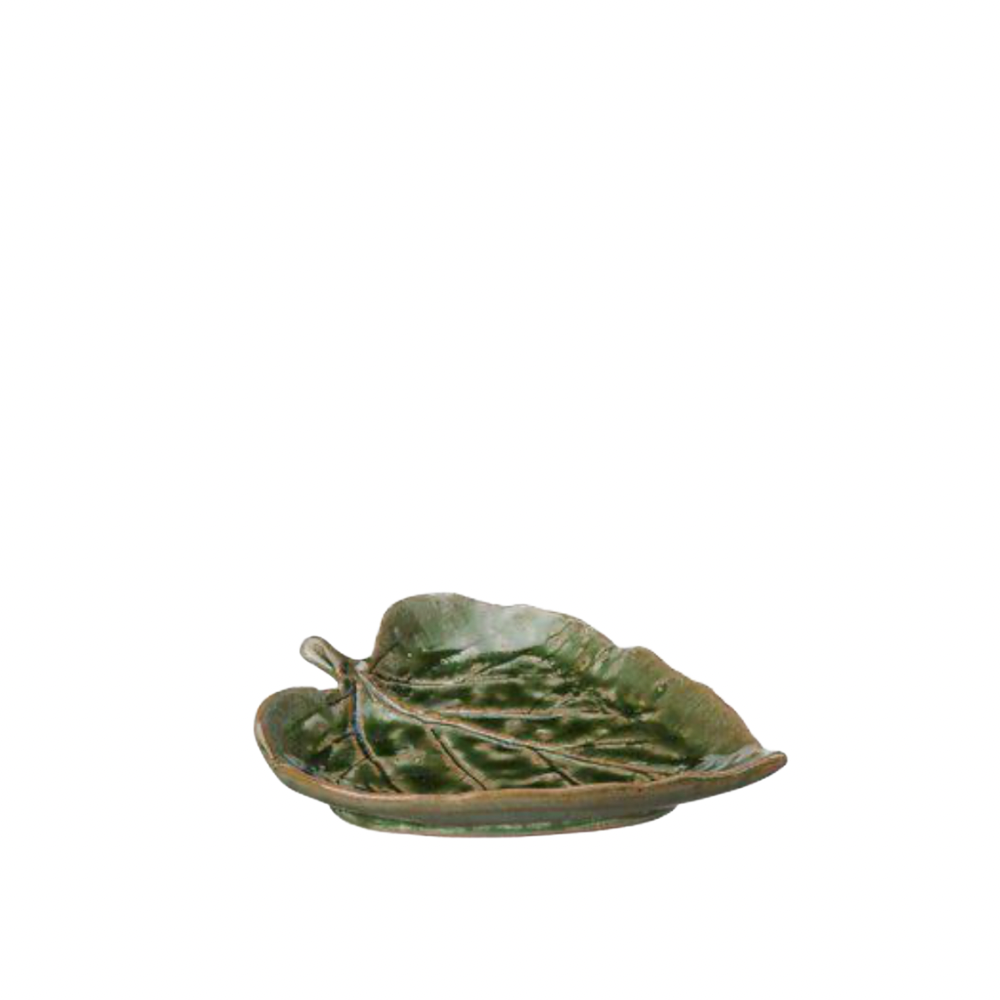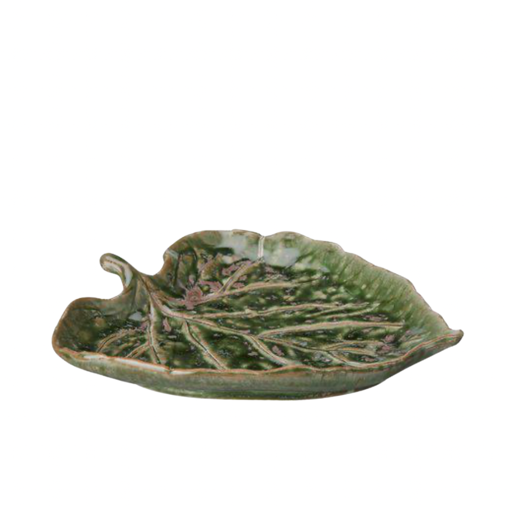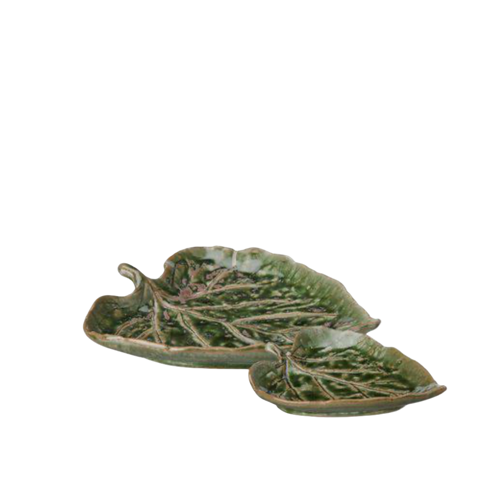 Ett dekorativt fat format som ett blad i vackert grönmelerat porslin. Passar perfekt som serveringsfat, smyckesfat eller som dekoration i hemmet. Kombinera flera storlekar för ett naturnära och harmoniskt uttryck. Säljes i set om 2.