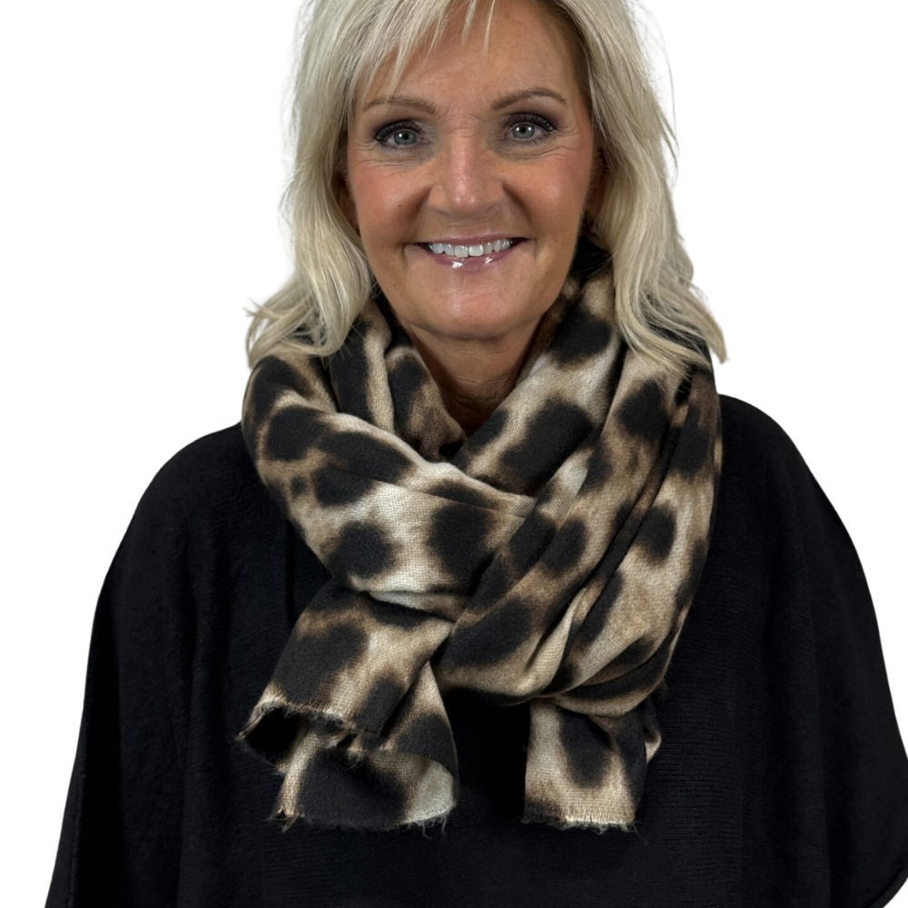 Ge din outfit en trendig och elegant detalj med denna halsduk i leomönster. Den vackra bruna färgskalan passar både vardag och fest och adderar en stilfull accent till din look.