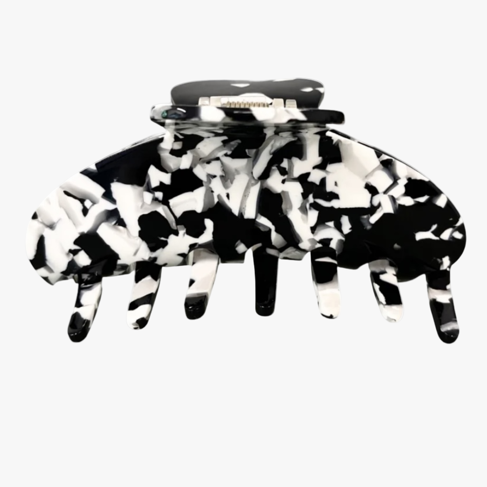 Förhöj din frisyr med denna stilrena hårklämma i svart och vitt från Stella Details. Tillverkad med fokus på hög kvalitet och snygg design, är klämman både praktisk och dekorativ.