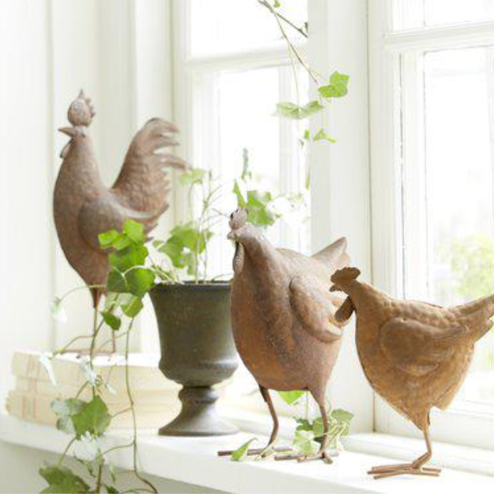 Hönan passar utmärkt att placera i trädgården, vid entrén, på altanen eller i hemmet. Den är dekorativ som ensam detalj men kan även kombineras med andra rostiga plåtdjur, krukor och mossa för ett naturinspirerat arrangemang.