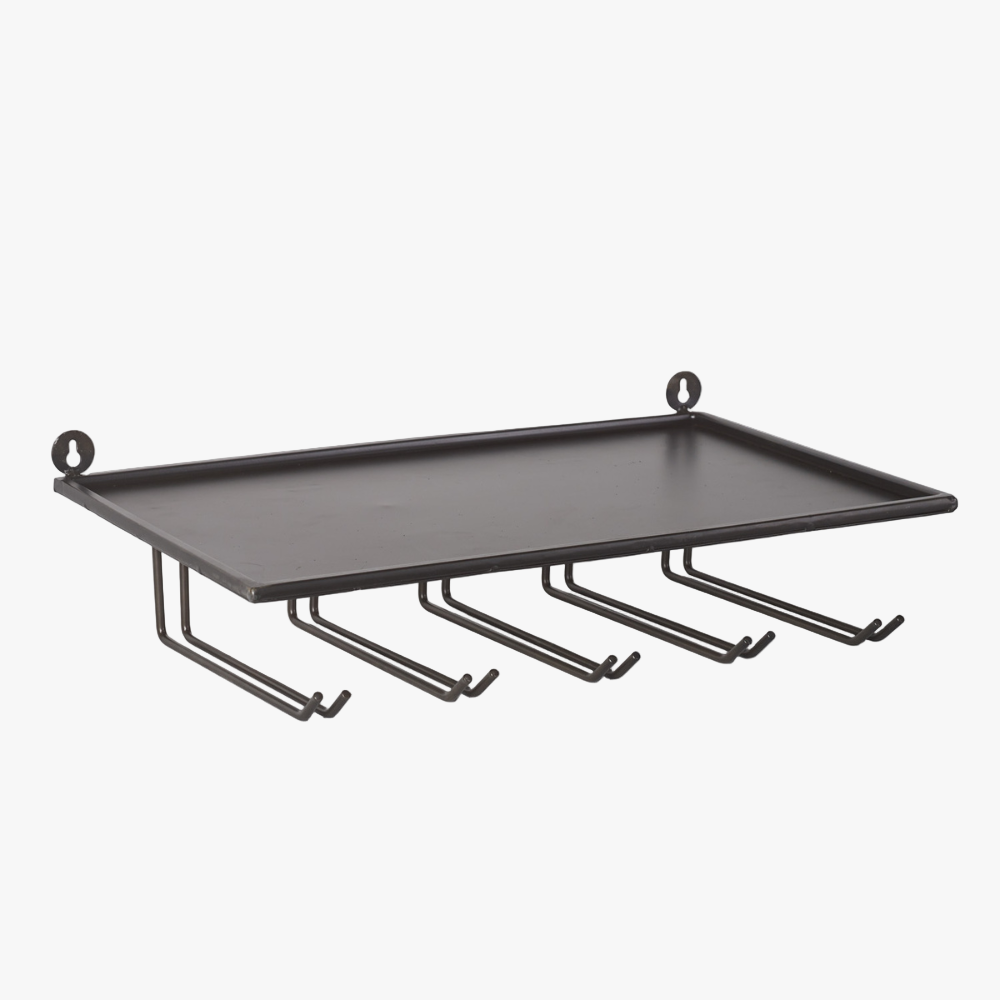 Skapa en stilren och praktisk förvaringslösning med denna hylla med vinglashållare i metall. Hyllan rymmer upp till 12 vinglas och har ett övre hyllplan perfekt för lyktor, blommor, kryddor eller dekorationer. En elegant detalj som passar lika bra i köket som i matsalen eller hemmabaren.