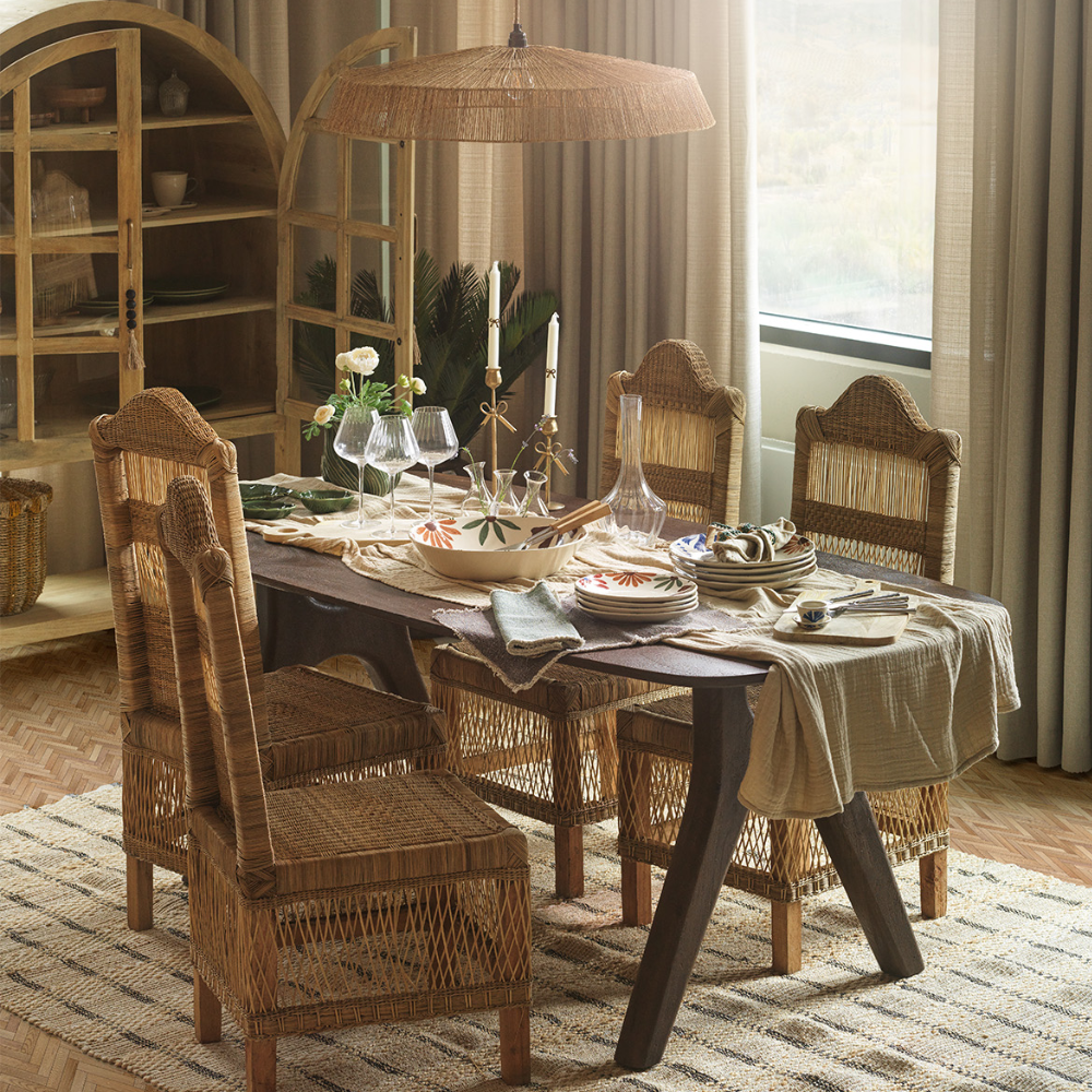 Karmstol Tribe från Affari of Sweden är en handflätad stol i naturligt material där varje exemplar är helt unikt. Stolen tillverkas för hand av skickliga hantverkare på den afrikanska landsbygden, vilket ger ett levande uttryck med naturliga variationer i form och nyans.