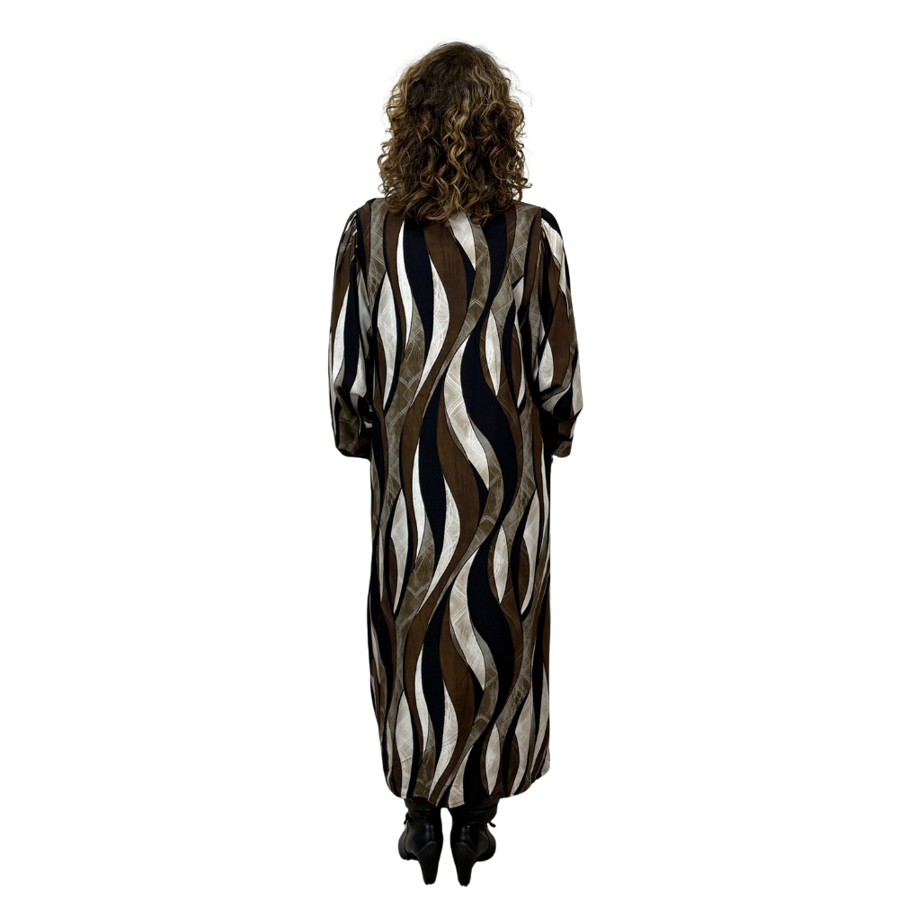 Klänning Petronella – mönstrad helknäppt klänning med puffärm
