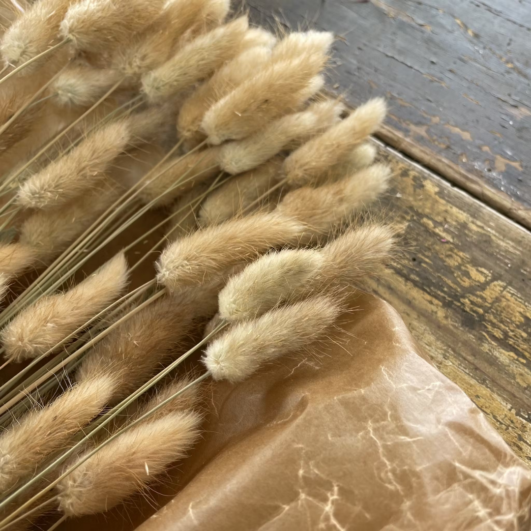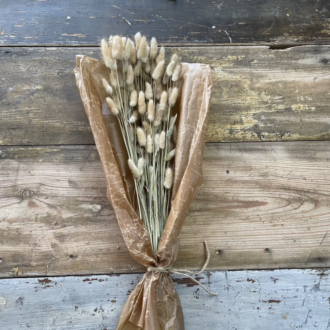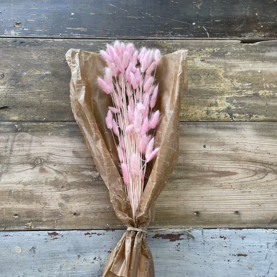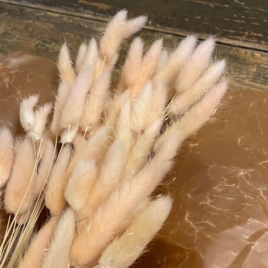 Mjukt torkad lagurus i flera färger som ger en lätt och naturlig känsla till buketter och dekorationer.