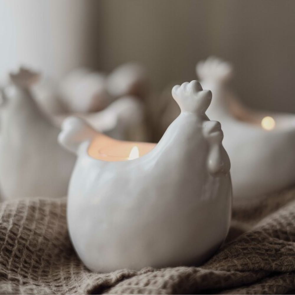 Produktnamn: Majas Easter Hen tealightholder Material: Keramik Färg: Vit Mått: 10x8x10cm |