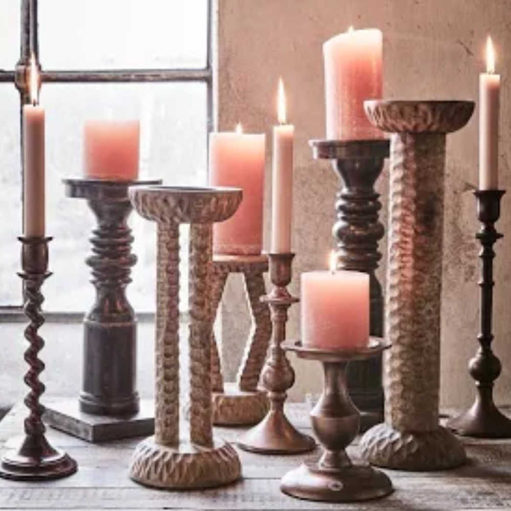 En maffig ljusstake i snidat trä som ger en naturlig och rustik känsla till ditt hem. Den vackra trästrukturen och det gedigna hantverket gör varje ljusstake unik – en perfekt kombination av charm och karaktär.