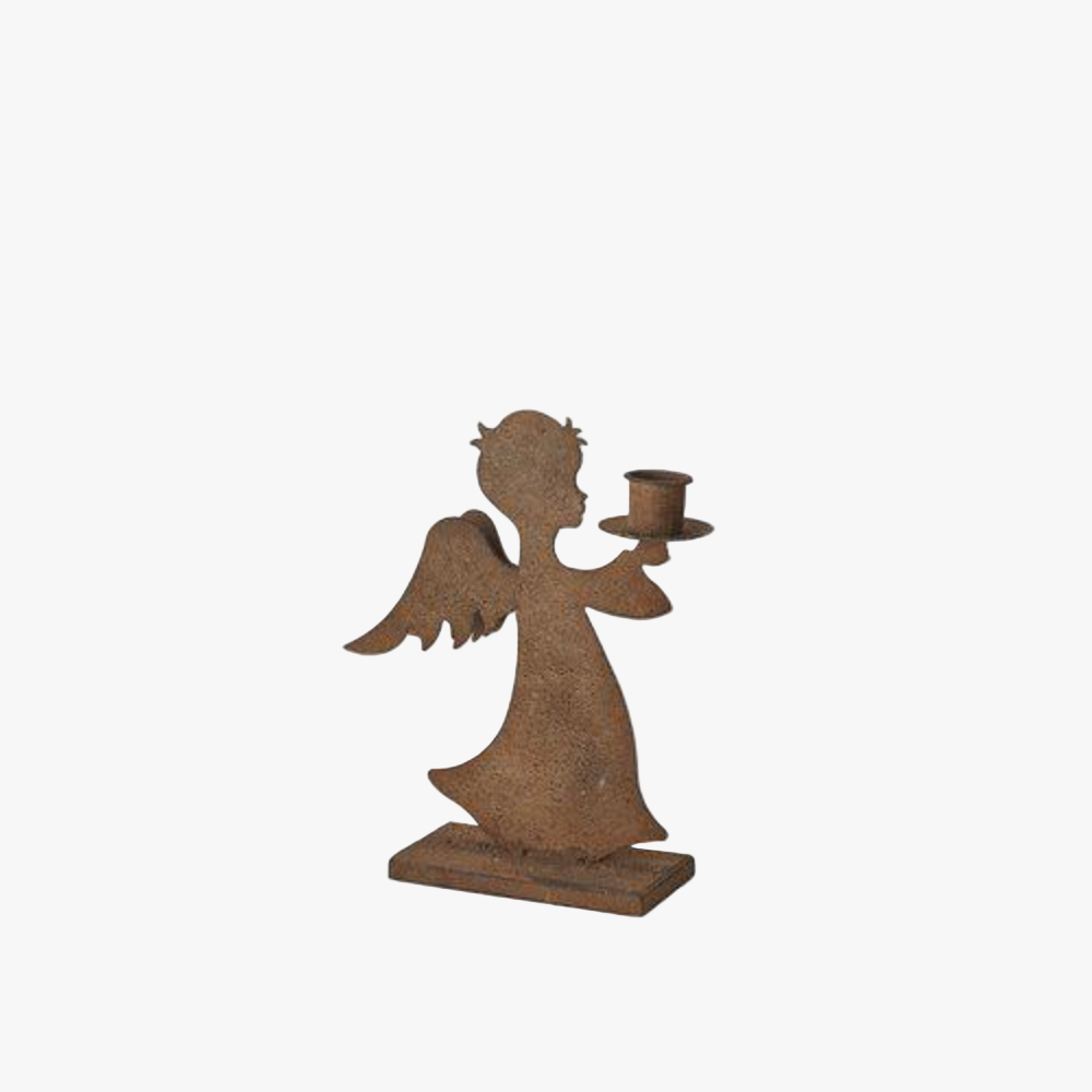 Skapa en varm och stämningsfull känsla i hemmet med Ängel Idun i rost, en dekorativ figur i järn med ljushållare för antikljus. Den rustika rostfärgen ger ett tidlöst och charmigt uttryck som passar både modern och lantlig inredning.