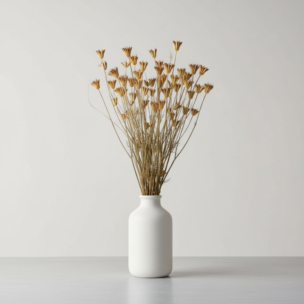 Produkt: Torkade blommor Produktnamn: Nigella Orientalis Färg: Natur Längd: ca 50cm Vikt: ca 80gr |