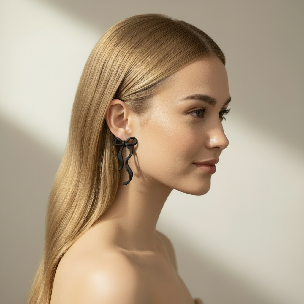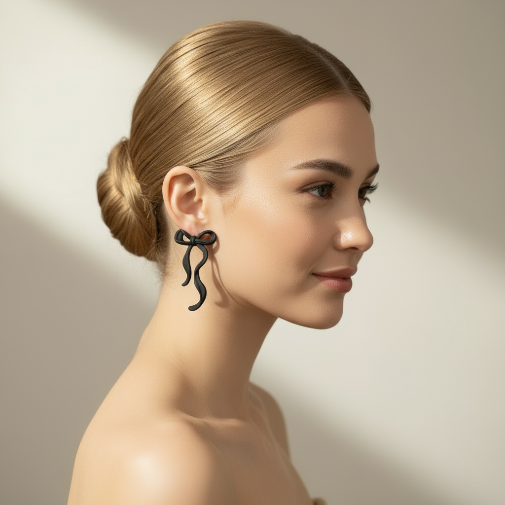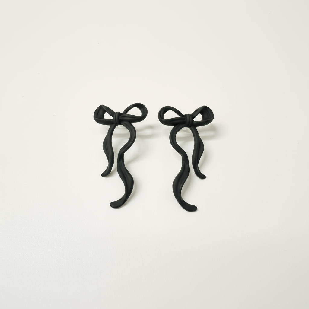 Black Bow – Svarta rosettörhängen i matt finish