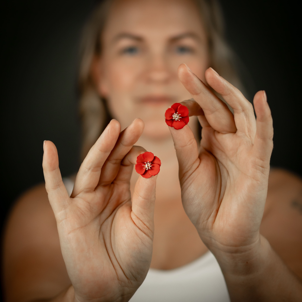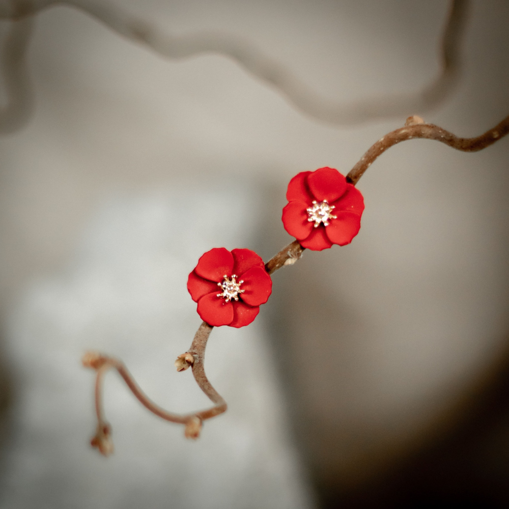 Örhängen Delicate Dahlias, Röd