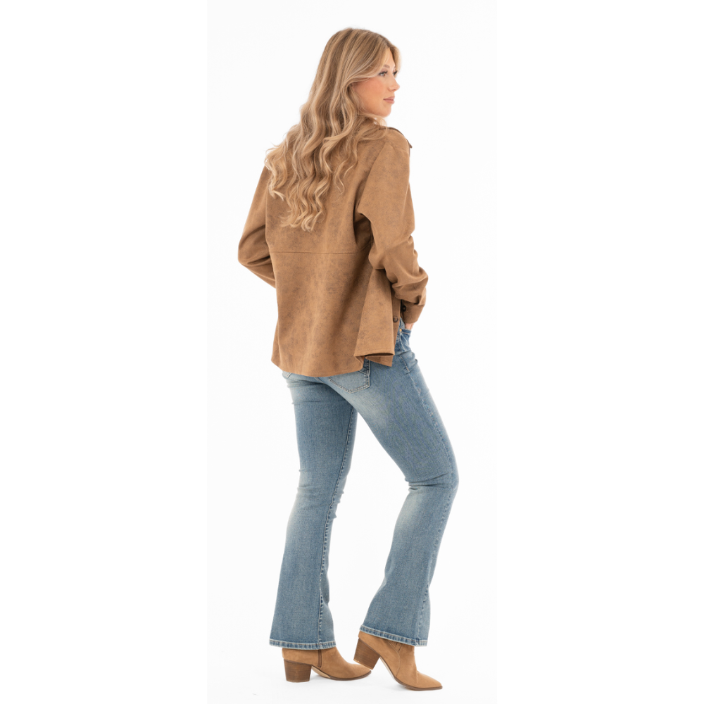 Ett måste i vårens garderob – Jacka Rae är en trendig fuskmocka jacka i snygg cognacfärg. Den oversized och löst sittande modellen skapar en avslappnad, modern siluett som fungerar perfekt både till jeans och klänningar.