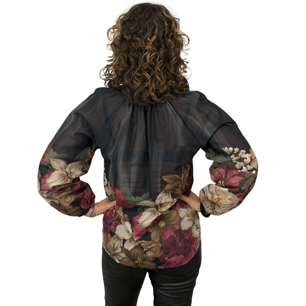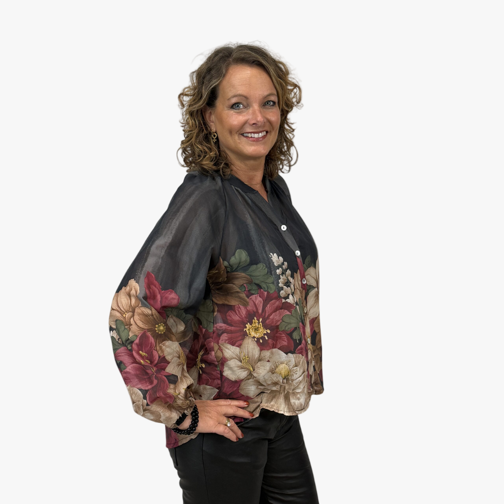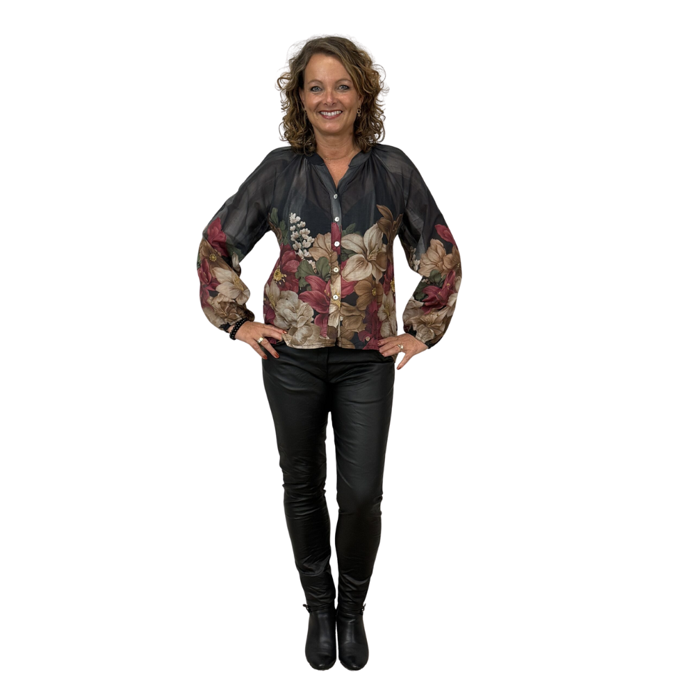 Den svarta nyansen gör den lätt att matcha, medan den feminina designen ger en stilren och klädd look. Blusen har en mjuk och luftig passform som gör den bekväm att bära både till vardags och vid festligare tillfällen.
