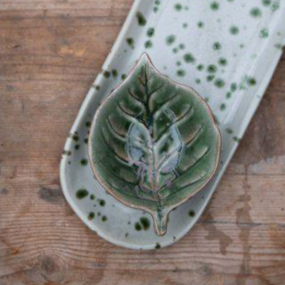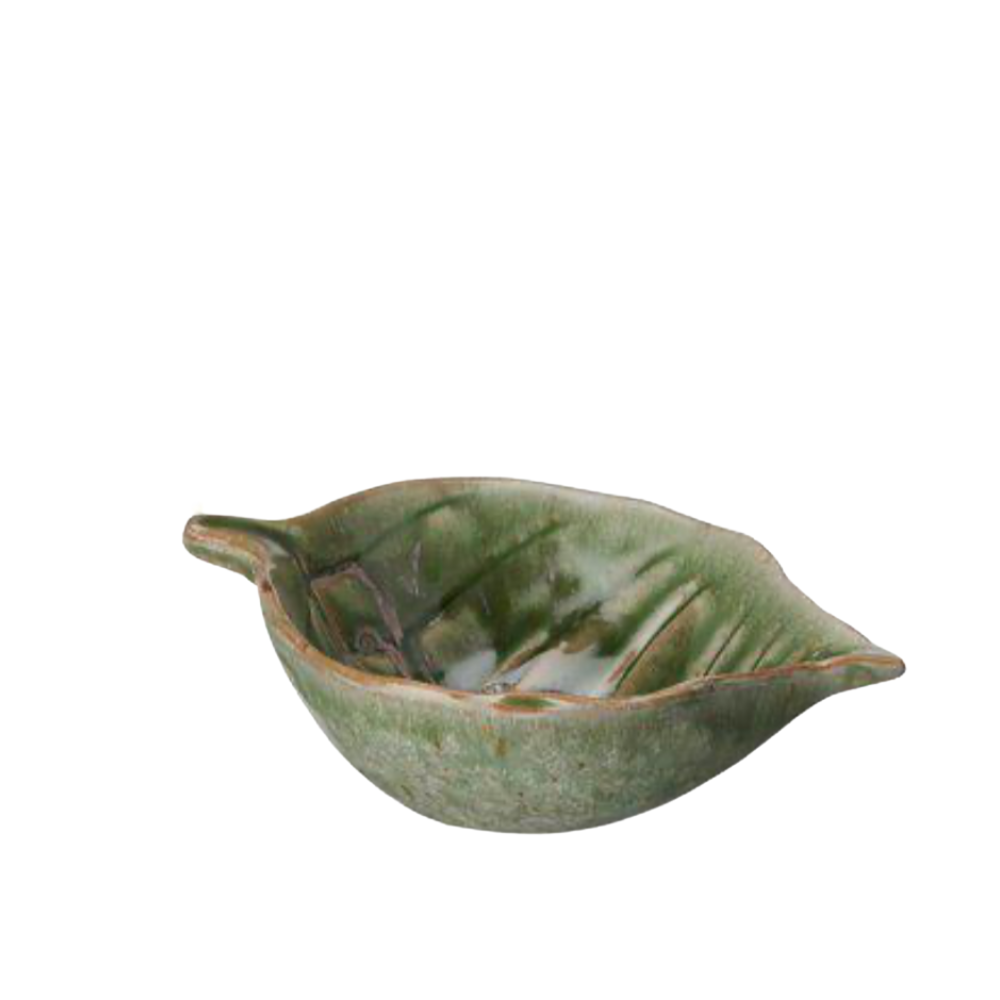 Ge dukningen en naturlig och unik känsla med Skål Manda, en dekorativ skål i grönmelerat porslin formad som ett vackert blad. Perfekt för servering, snacks, smycken eller som dekorativ inredningsdetalj i hemmet. Säljes i set om 2.