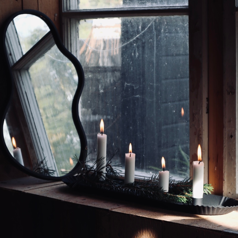 Spegeln blir en vacker detalj i hallen, sovrummet eller vardagsrummet – perfekt både som funktionell spegel och som inredningsdetalj på väggen.