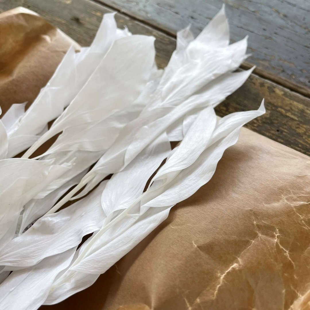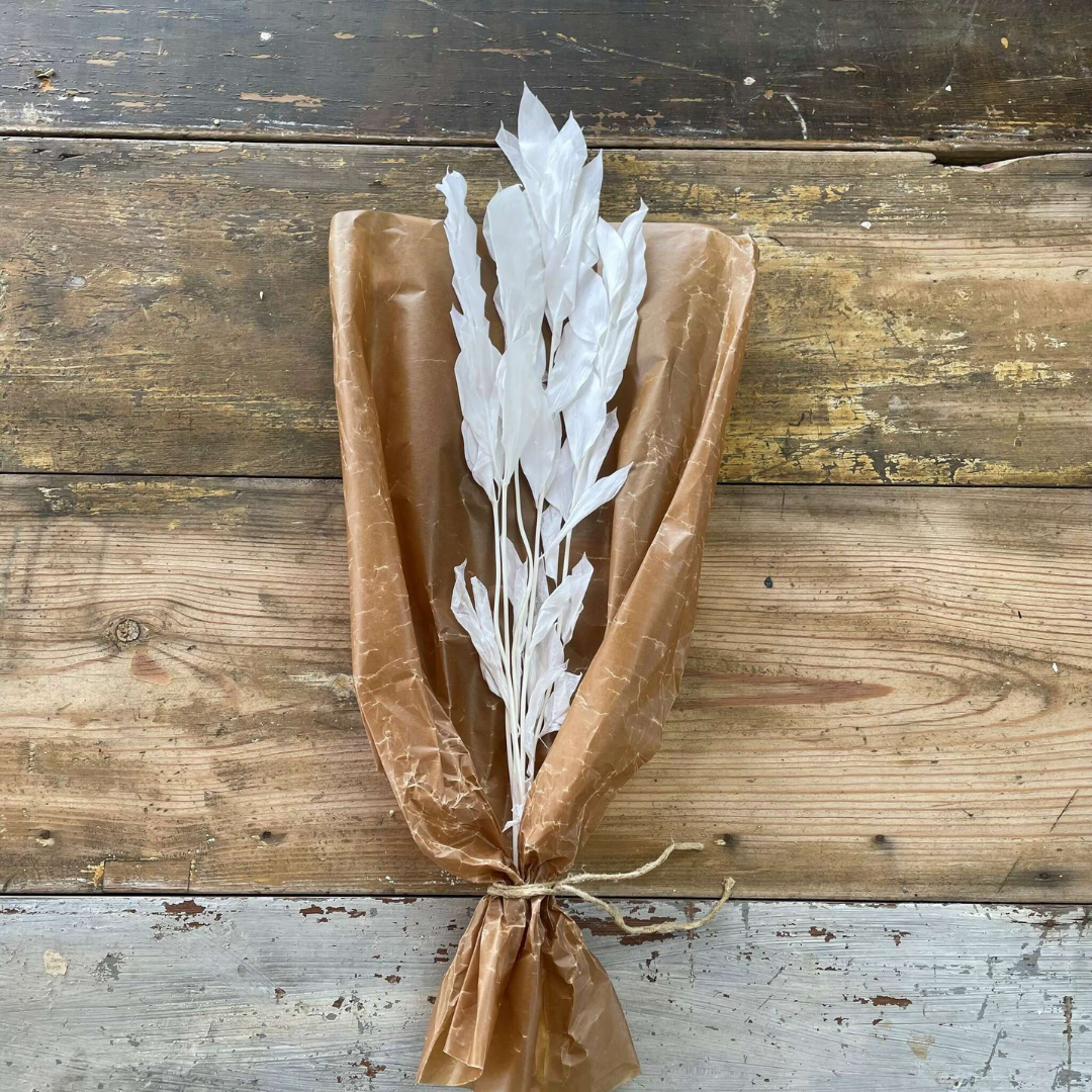 Torkad ruscus med stora blad i naturlig ton som ger en mjuk och fyllig känsla till buketter och dekorationer. Tålig, dekorativ och enkel att forma.