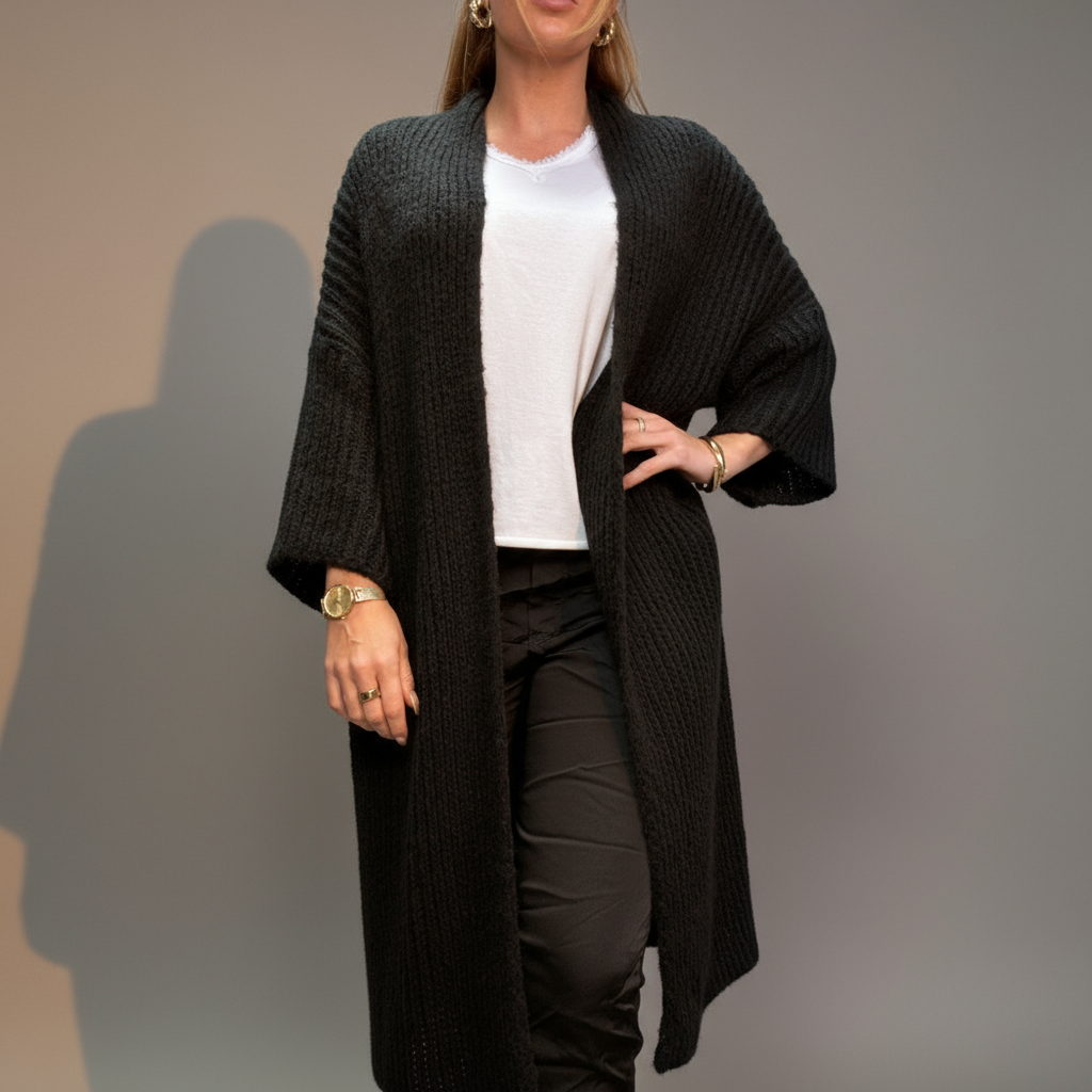 Upplev den perfekta kombinationen av värme, stil och komfort med denna mysiga, grovstickade långkofta från Gemini. Den mjuka stickningen ger en härligt omslutande känsla, medan den långa modellen skapar en elegant och avslappnad siluett.