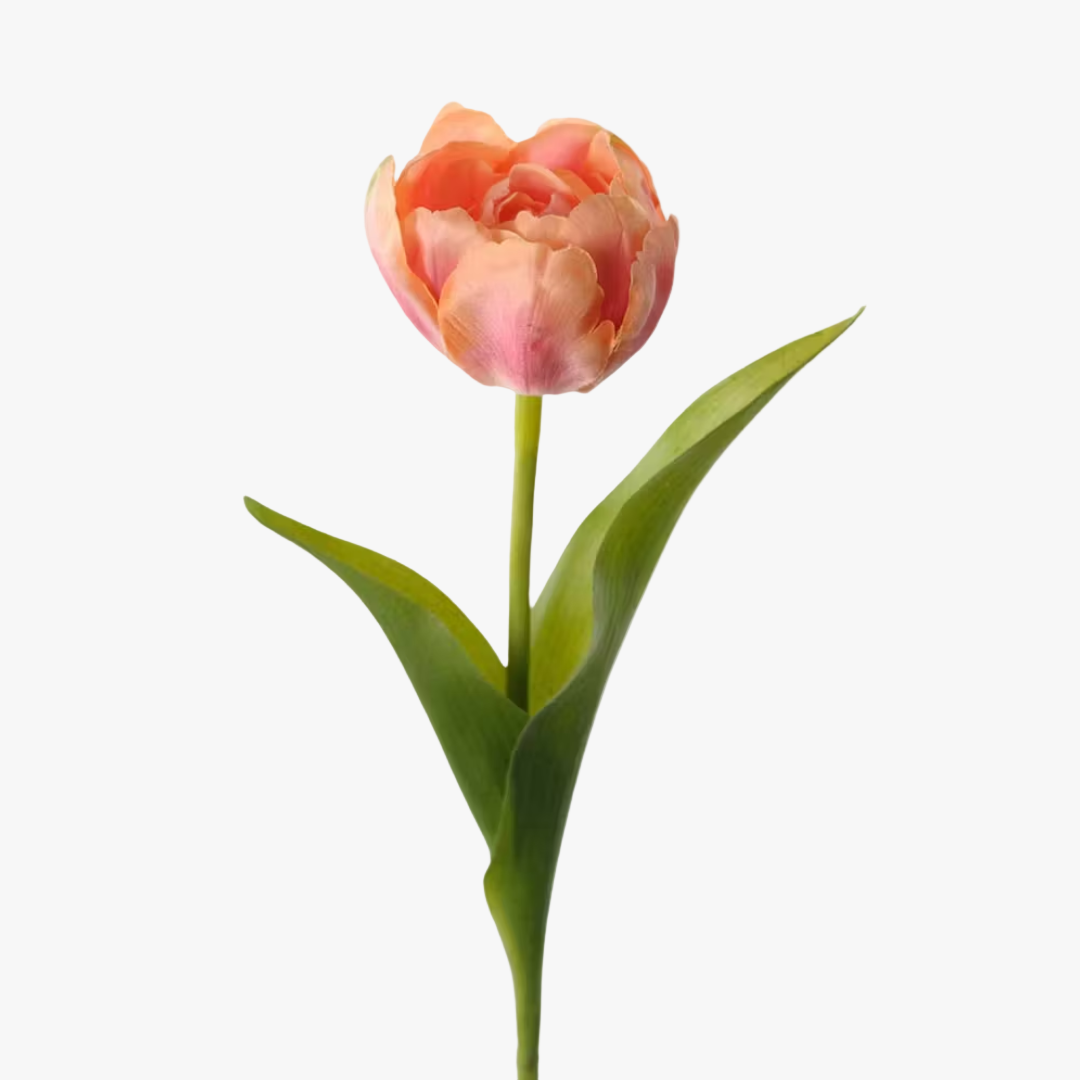 Den konstgjorda orangea tulpanen är en vacker och naturtrogen blomma som sprider en romantisk och fräsch känsla i ditt hem eller på kontoret. Med sina mjuka, rosa kronblad och detaljerade utformning är den perfekt för dig som vill njuta av tulpanens skönhet året runt, helt utan skötsel.