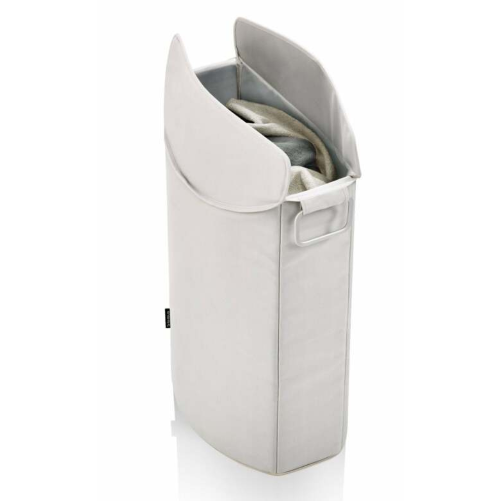 Det smarta locket viks lätt undan för att lägga i eller ta ur tvätt, sedan går det att stänga så att du döljer din smutstvätt väl.