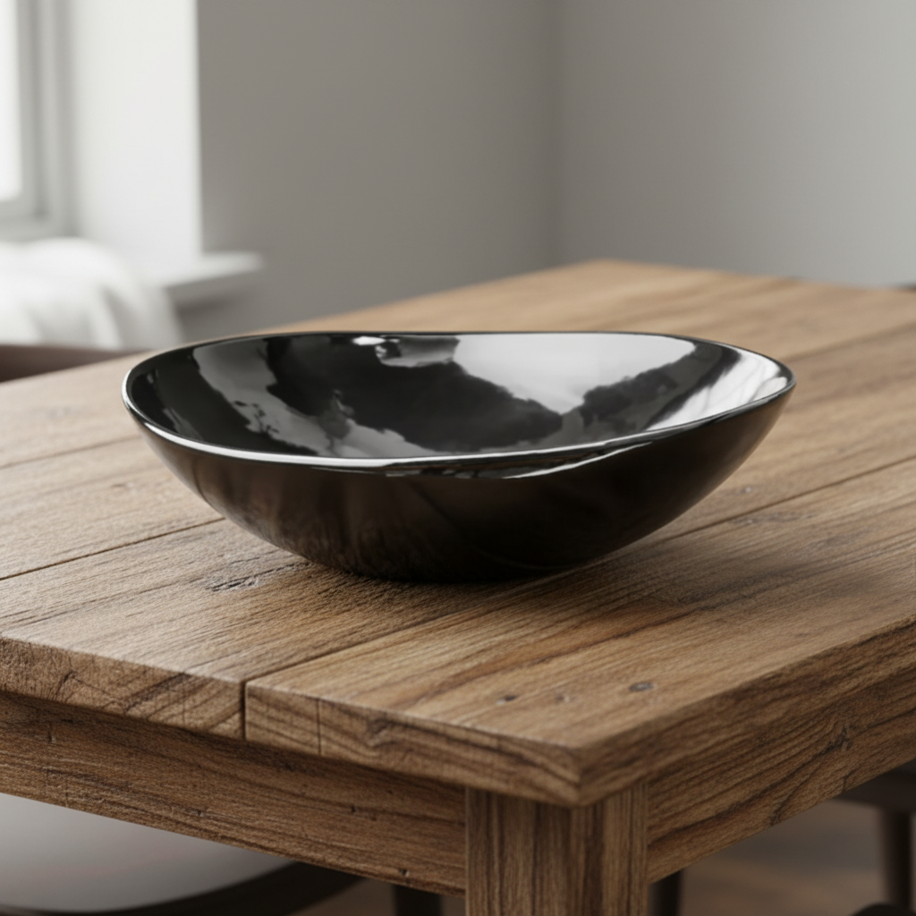 Vacker Skål Amelia i lyxig svart finish, perfekt för sallader, frukt eller vardagsbruk. Skålen är matcertifierad, tål maskindisk och mikrovågsugn, vilket gör den både praktisk och elegant. En stilren detalj till ditt bord som kombinerar funktion och design.