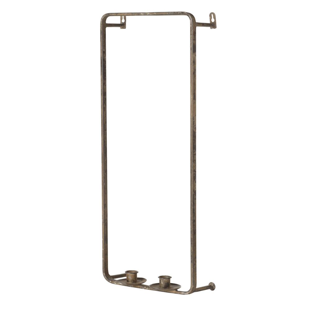 Skapa en stämningsfull atmosfär med denna stilrena väggljusstake i rå, svart metall. Ljusstaken har plats för två stearinljus och en grafisk ram som ger ett modernt och elegant uttryck på väggen.