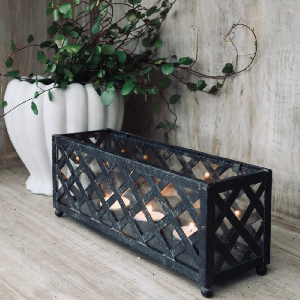 Rustik bordsljusstake för 3 värmeljus – handgjord i järn och glas