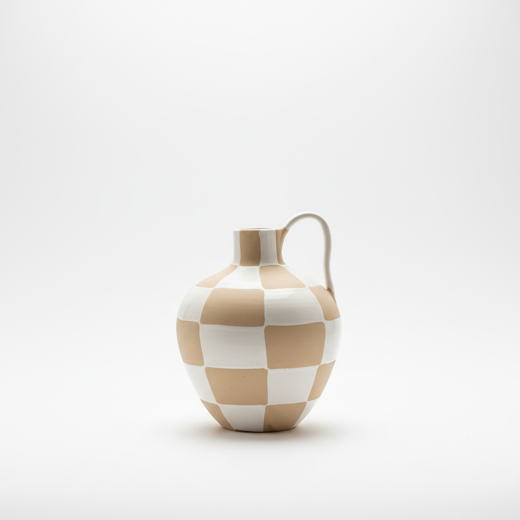 Varje vas är handgjord, vilket gör varje exemplar unikt – små färgskiftningar och prickar i glasyren är en del av dess charm och karaktär.